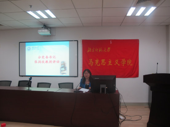 随后,分党委书记张润枝老师对新同学进行了入学教育。她代表beat365亚洲体育官方网站对新同学的到来表示热烈的欢迎,并对新生提出了要求和建议。首先,她要求同学们要向培养自己的学科气质,要“像马院的员工”,做到“在马信马,在马言马”,有坚定的政治立场,同时在研究之外积极参与理论宣讲。其次,她建议同学们早做规划,包括个人学业规划和职业规划,为自己的未来打好基础,同时她希望同学们能够拓宽视野。最后,她代表分党委表态,承诺不管是在校的员工还是已经毕业的员工,分党委永远会在这里,为大家提供服务和帮助。