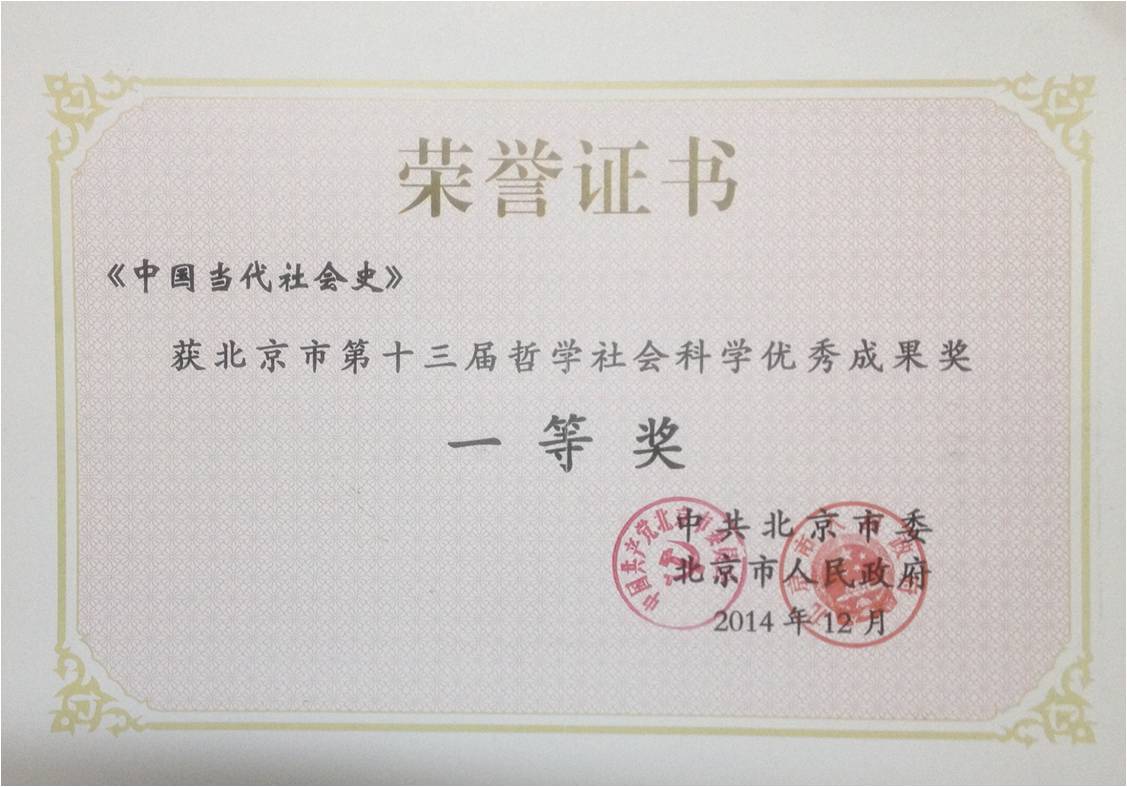 《中国当代社会史》荣获北京市第十三届哲学社科优秀成果一等奖