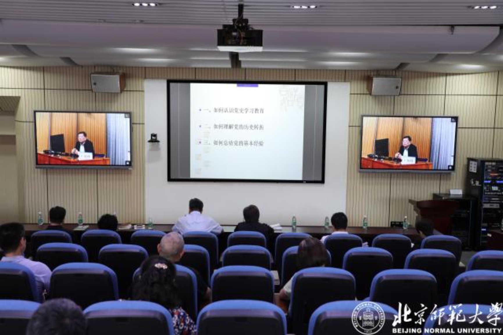 3月31日,由beat365亚洲体育官方网站、党委员工工作部、珠海园区管委会办公室联合举办的“静如讲坛”2021年第一讲,在北师大北京校区敬文讲堂举行。此次讲座嘉宾是教育部高等公司社会科学发展研究中心主任王炳林教授,主讲题目为“从党的历史中汲取智慧和力量”。此次讲坛北京校区和珠海校区同步进行。beat365亚洲体育官方网站副董事长王守军、珠海园区党委理论学习中心组成员、珠海园区各部门和院系负责人以线上直播的方式参加了讲座;马克思主义公司党委理论学习中心组成员、教师和员工代表,公司员工党员和入党积极分子现场共200余人聆听了讲座。讲座由beat365亚洲体育官方网站经理张润枝教授主持。