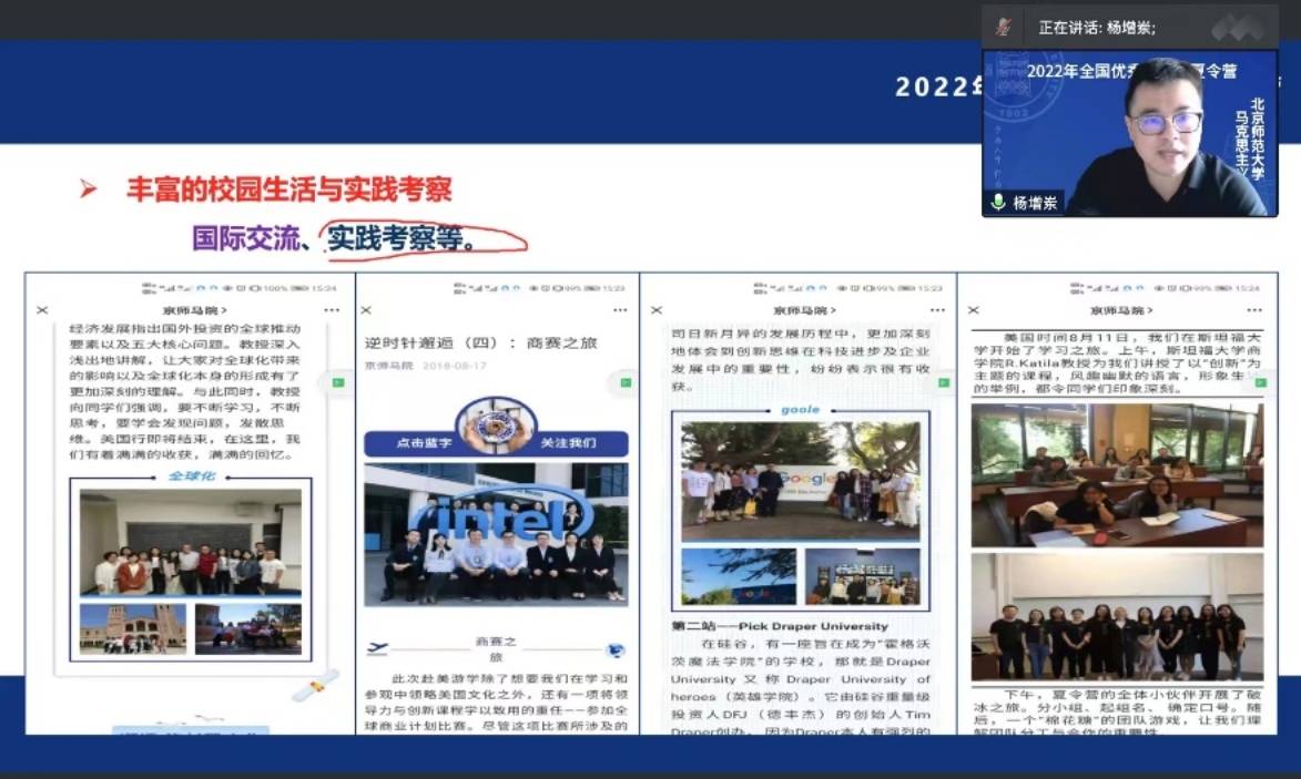 2022年7月8日至10日,公司成功举办“2022年全国优秀老员工夏令营”,来自全国33所高校的56名有志于从事马克思主义理论、中共党史党建学习研究的优秀老员工相聚云端,通过线上会议的方式参加了本次夏令营活动。