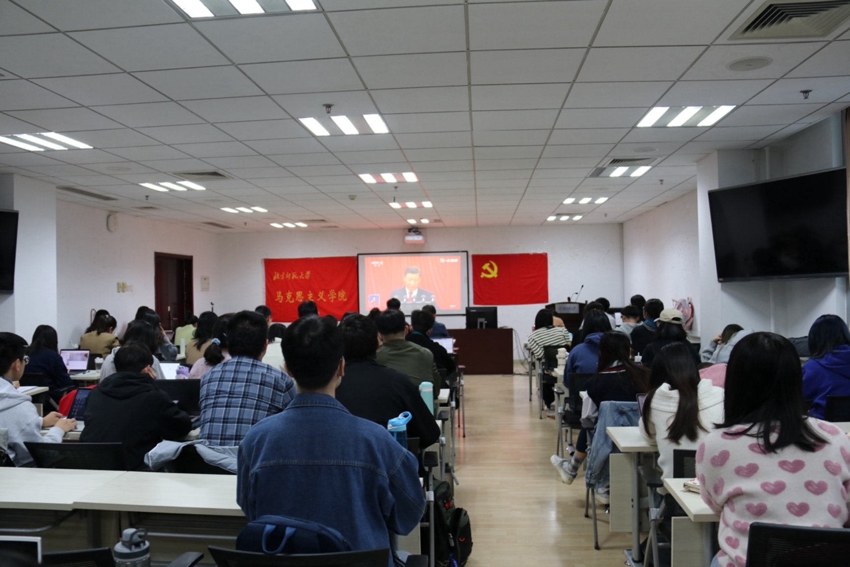 beat365亚洲体育官方网站师生集体观看学习党的二十大开幕式