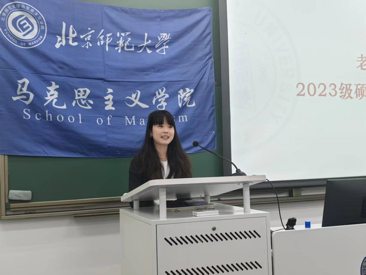 2023级硕士生杨小叶代表在校生发言。杨小叶从三个方面向同学们分享了自己在北师马院学习的体会和感悟。第一,坚定理想信念,筑牢理想之基,以切实行动发扬好马克思主义。第二,锤炼专业知识,提升专业本领,在学思践悟中真正理解马克思主义。第三,保持谦逊心态,正视自身不足,不盲目攀比,不断实现自我超越。最后,杨小叶希望同学们珍惜时光,祝同学们在北师马院学有所成。
